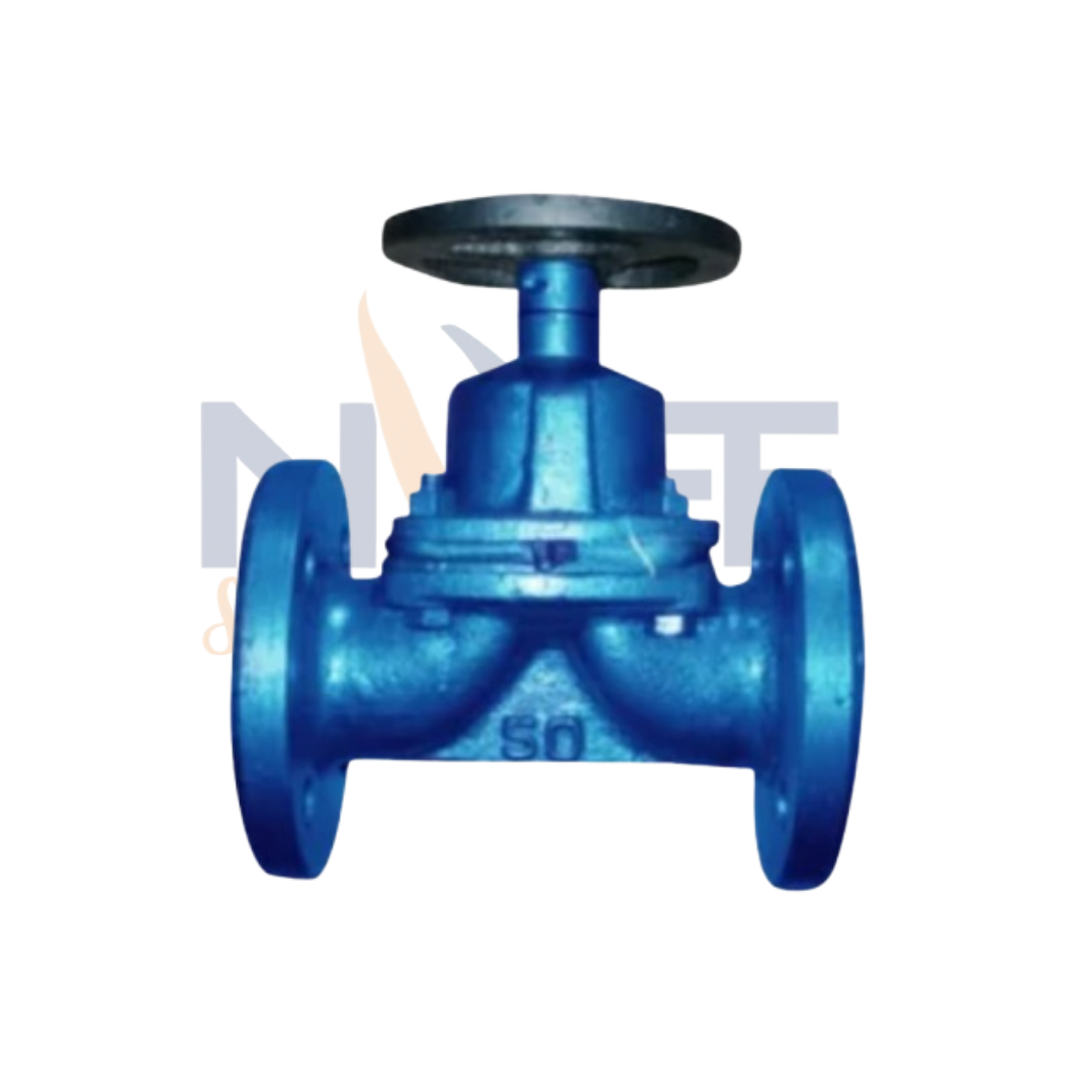 A diaphragm valve with flanged ends is a versatile and reliable valve designed for controlling the flow of fluids, including corrosive and abrasive media. It features a flexible diaphragm that acts as the closing mechanism, providing a tight seal and preventing leakage. The flanged ends ensure secure and easy connections to pipelines, making installation and maintenance more convenient. Diaphragm valves are particularly effective in applications requiring minimal contamination, as the diaphragm isolates the fluid from the valve’s internal components. Commonly used in industries such as chemical processing, water treatment, and pharmaceuticals, this valve is valued for its durability, ease of operation, and ability to handle a wide range of fluids.