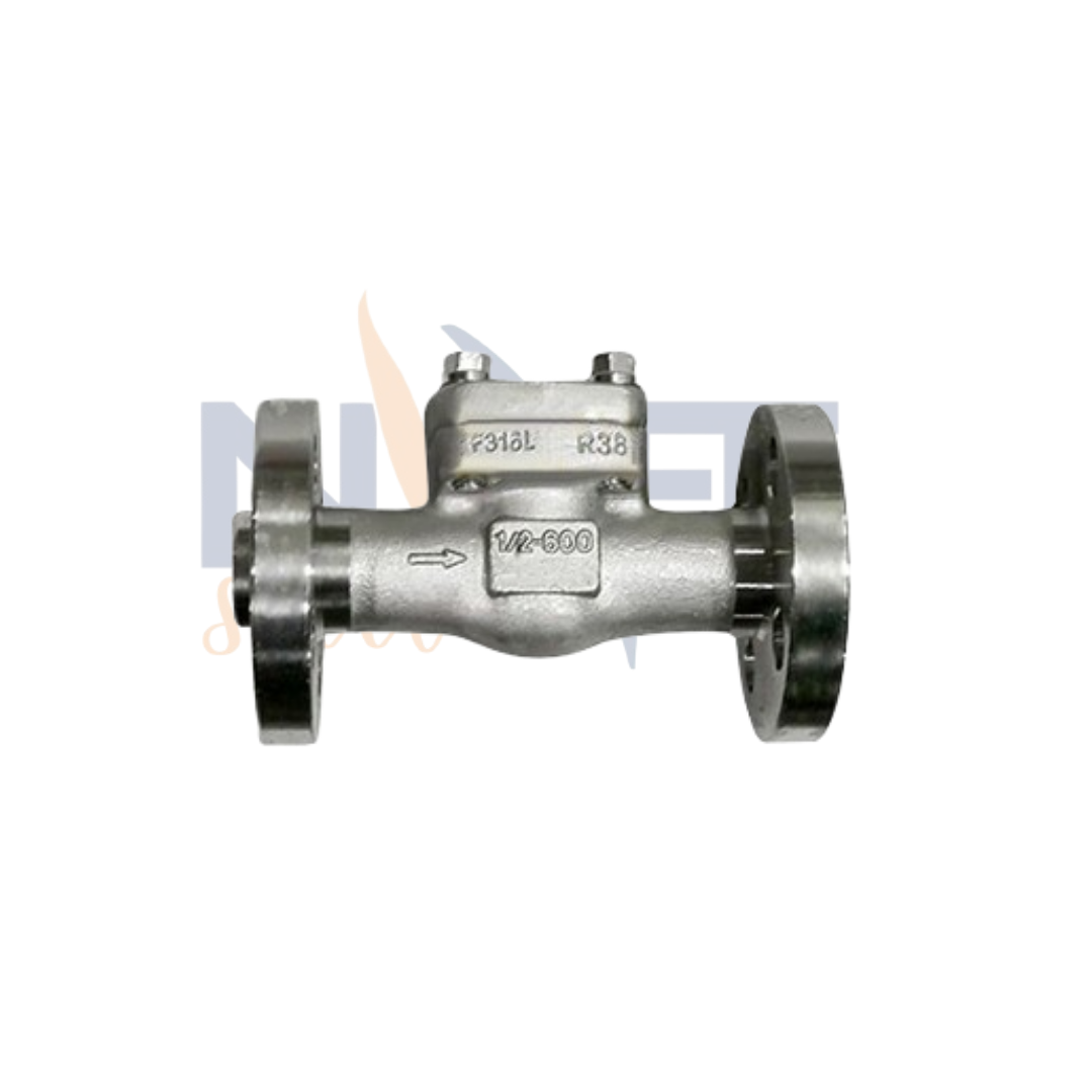 An integral flanged end non-return valve made of forged steel is a durable and efficient valve designed to allow the flow of fluids in one direction while preventing backflow in high-pressure and high-temperature systems. The integral flanged ends provide a secure and leak-proof connection to pipelines, eliminating the need for additional flanges or welding. Constructed from forged steel, this valve offers superior strength, resistance to corrosion, and enhanced durability, making it suitable for demanding industrial applications. The non-return valve operates automatically, closing when reverse flow is detected, protecting equipment and maintaining system integrity. It is commonly used in industries such as oil and gas, petrochemical, and power generation for reliable and efficient backflow prevention.